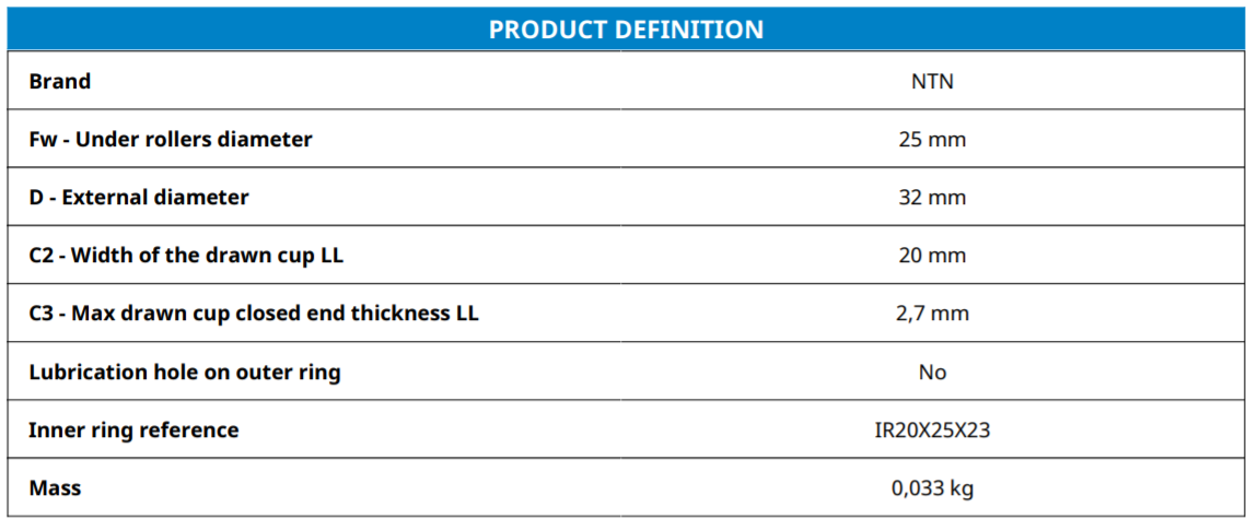 Datasheet of NTN Needle roller bearings HK2520LL , HK2520LL/3AS